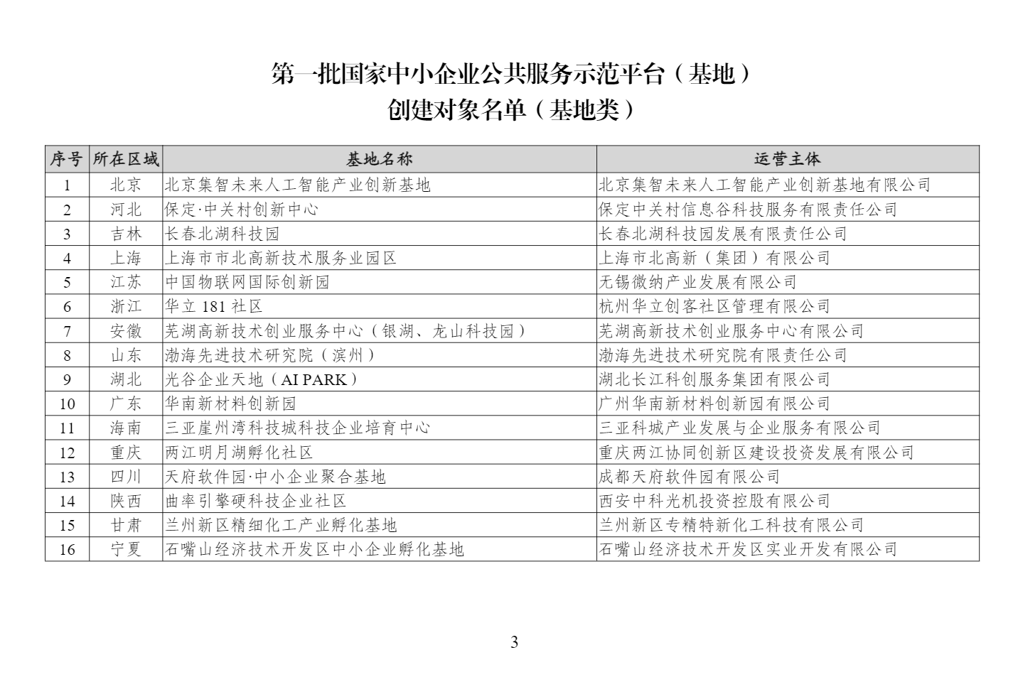 按照《国家中小企业公共服务示范平台(基地)创建管理办法》(工信部企业〔2025〕225号)和《工业和信息化部办公厅关于推荐2025年度国家中小企业公共服务示范平台(基地)创建对象的通知》(工信厅企业函〔2025〕460号)要求,工业和信息化部组织开展了相关申报推荐和评审工作,现将第一批国家中小企业公共服务示范平台(基地)创建对象名单(见附件,排名不分先后)进行公示,如有异议,请在公示期内将书面意见通过电子邮件实名反馈。