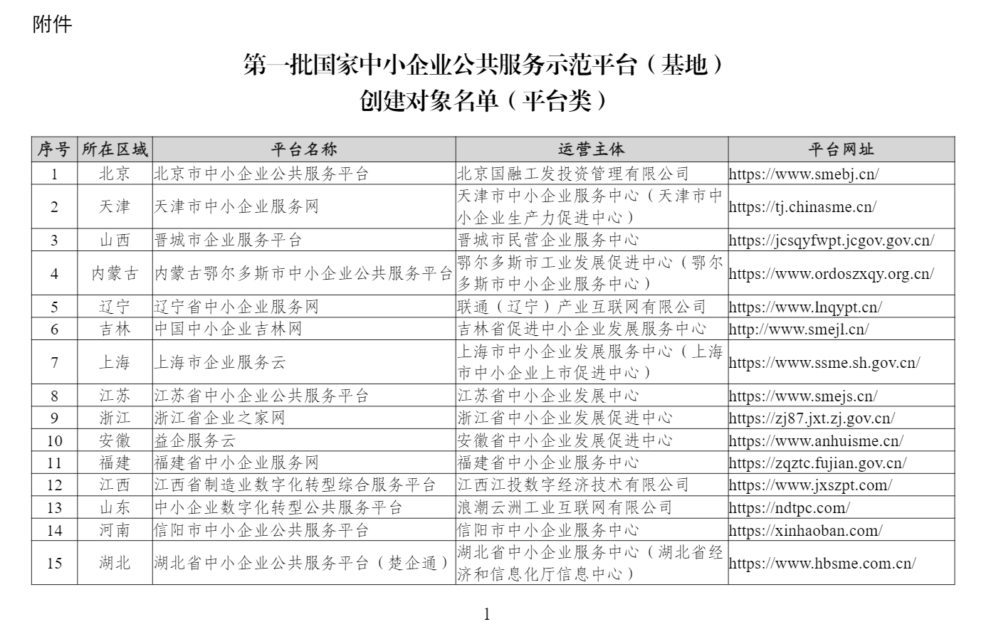 附件:第一批国家中小企业公共服务示范平台(基地)创建对象名单